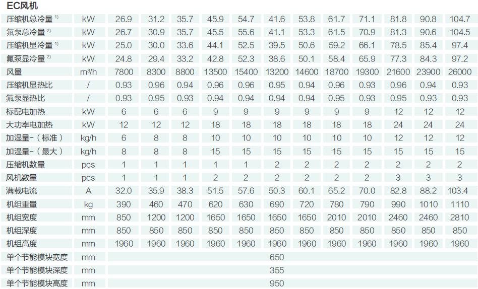單壓縮機制冷系統(tǒng)機型配置一臺氟泵自然冷節(jié)能模塊,雙壓縮機制冷系統(tǒng)機型配置兩臺氟泵自然冷節(jié)能模塊,確保在室外環(huán)境溫度較低時能關(guān)閉全部壓縮機,充分利用自然冷源,降低能耗。